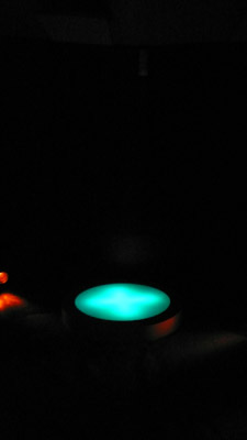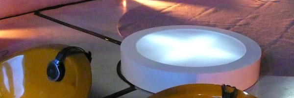 10 disques lumineux (bois peint - plexiglas - lampes)