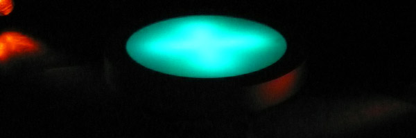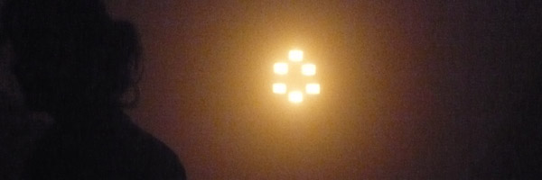 10 disques lumineux (bois peint - plexiglas - lampes)
