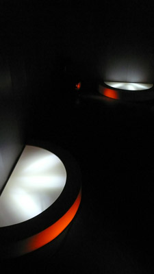 La visite des crayères de Pommery en dessous de la ville de Reims est une expérience remarquable. Nous quittons les bruits quotidiens de la grande fabrication pour se trouver dans une immense ville souterraine, d'anciennes voûtes gallo-romaines. Nous changeons littéralement d'espace temps. Comme la hauteur sous plafond, tout son ici devient énorme, chaque goutte d'eau, des phrases murmurées, des instruments joués, des tintements de verre... Marchant dans ces 18 kilomètres de couloirs identiques, peu éclairés et moites, nous nous perdons facilement. Pour se situer, les seuls indices sont des panneaux où figurent la date et les noms de villes " clientes " de champagne... Monte Carlo, Oslo, Londres, Copenhague, Rome. En regardant les bouteilles rigoureusement rangées, l'organisation du monde extérieur se fait jour, même dans ce lieu sombre. Il nous semble alors percevoir une photographie sonore de chaque ville, autour de la même bouteille, mais aux quatre coins du monde... Inside Out. Ainsi, à partir d'un seul et même lieu, nous voyagions en plusieurs autres points clos.